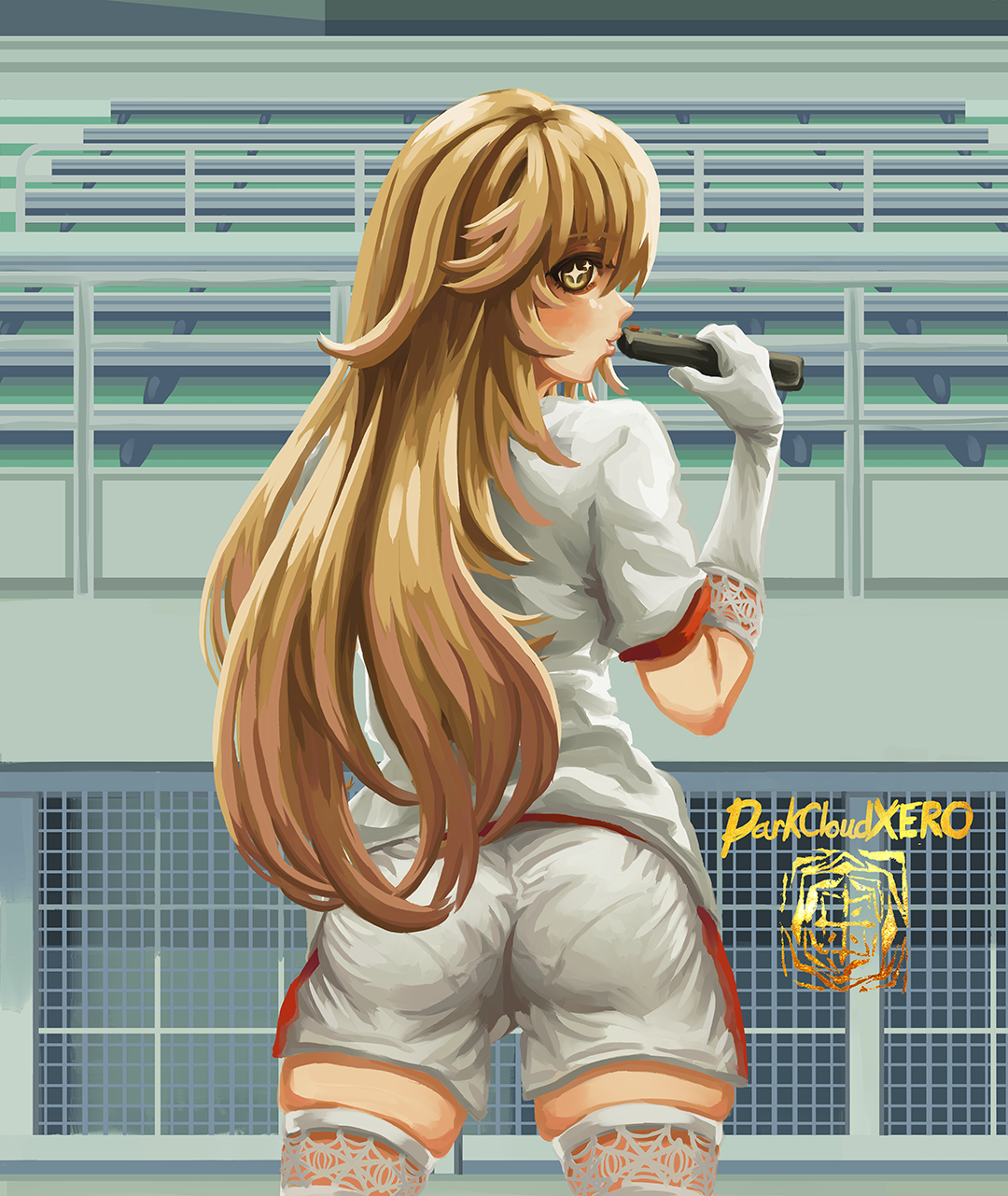 This is actually a RE:do from 2022. I decided to re-paint not only Misaki but also the whole background. From there I then simplified my painting all over. This time I also decided to actually add in a sports bra this time. There were also other details I changed but you can compare it if interested. Here is the old version: